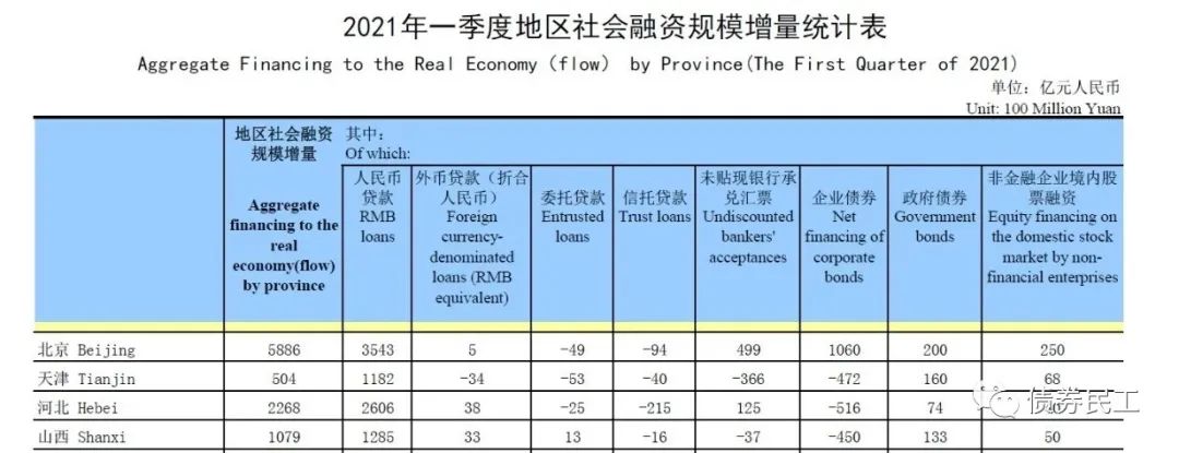 1、根據(jù)中國人民銀行2021年一季度地區(qū)社會融資規(guī)模增量統(tǒng)計表,河北省的企業(yè)債券融資金額為-516億元,位列全國倒數(shù)第一,這個金額比引發(fā)信用債券市場大波動的永煤事件所在的河南(-271億元)、華晨集團所在的遼寧(-295億元)還要低。在沒有出現(xiàn)重大信用債券負面輿情的情況下,這個數(shù)據(jù)真的是讓人震驚了。