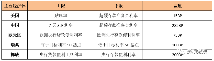 (1)通常利率走廊區間的上限為央行貸款給金融機構的利率,下限則為金融機構存錢在央行的利率,利率走廊區間的調控目標則為金融機構之間的拆借利率,也即通過調控確保金融機構之間的拆借利率在利率走廊的區間內波動。例如,當同業拆借利率突破區間上限時,金融機構便可以轉而向央行借款,反則反之。