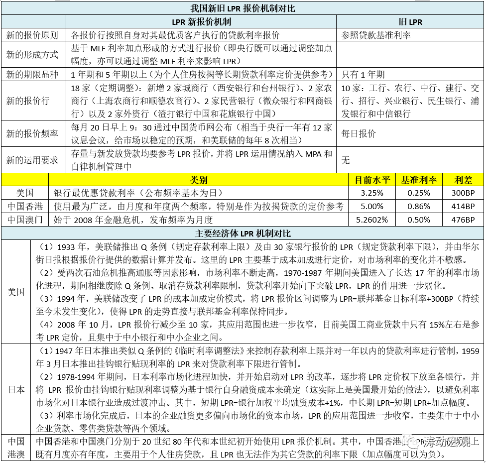 (3)和2013年推出的LPR相比,LPR新報價機制有諸多創新之處,主要體現在報價原則(基于最優客戶)、形成方式(MLF加點)、期限品種(1年和5年以上)、報價行(數量更多且類型更豐富)、報價頻率(固定于每月20日)以及新的運用要求(通過MPA和自律機制管理)來強化約束等方面。