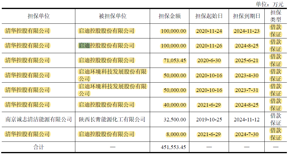 第二,是對啟迪控股及其下屬子公司提供的連帶責(zé)任擔(dān)保,截止2021年6月底,擔(dān)保余額41.9億;