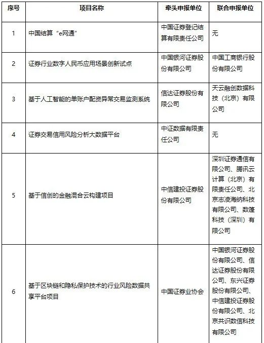 值得注意的是,此次項目中包含一個關于數字人民幣相關創新試點項目,項目名稱為“證券行業數字人民幣應用場景創新試點”,由銀河證券牽頭申報,工商銀行聯合申報。
