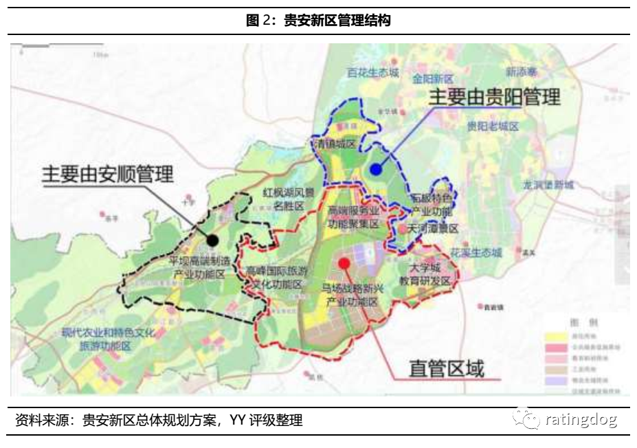 貴安新區(qū)分為直管區(qū)和非直管區(qū),其中直管區(qū)域470平方公里,所轄范圍為貴陽(yáng)市花溪區(qū)湖潮鄉(xiāng)、黨武鄉(xiāng),清鎮(zhèn)市紅楓湖鎮(zhèn)平寨村、蘆貓?zhí)链濉⒅幸淮濉⒅邪舜濉⑻m安村、池菇村、中八居委會(huì),安順市平壩縣馬場(chǎng)鎮(zhèn)、高峰鎮(zhèn)。貴安新區(qū)直管區(qū)由省委、省政府的派出機(jī)構(gòu)貴安新區(qū)黨工委管委會(huì)統(tǒng)管,履行開(kāi)發(fā)建設(shè)和經(jīng)濟(jì)社會(huì)管理職能,而非直管區(qū)由屬地各級(jí)政府負(fù)責(zé)管理,享受貴安新區(qū)作為經(jīng)濟(jì)功能區(qū)的各項(xiàng)政策支持。