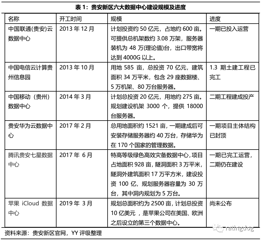 貴安新區(qū)目前重點(diǎn)項(xiàng)目有三大運(yùn)營(yíng)商超大型數(shù)據(jù)中心以及騰訊、華為、蘋果三大數(shù)據(jù)中心。