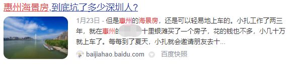 2、早些年來(lái)深圳打拼,深圳房票用完了,手里有閑錢(qián),在惠州買(mǎi)房投資,買(mǎi)海景房度假養(yǎng)老,把父母從老家接過(guò)來(lái)住,這類(lèi)群體大概40-50歲。
