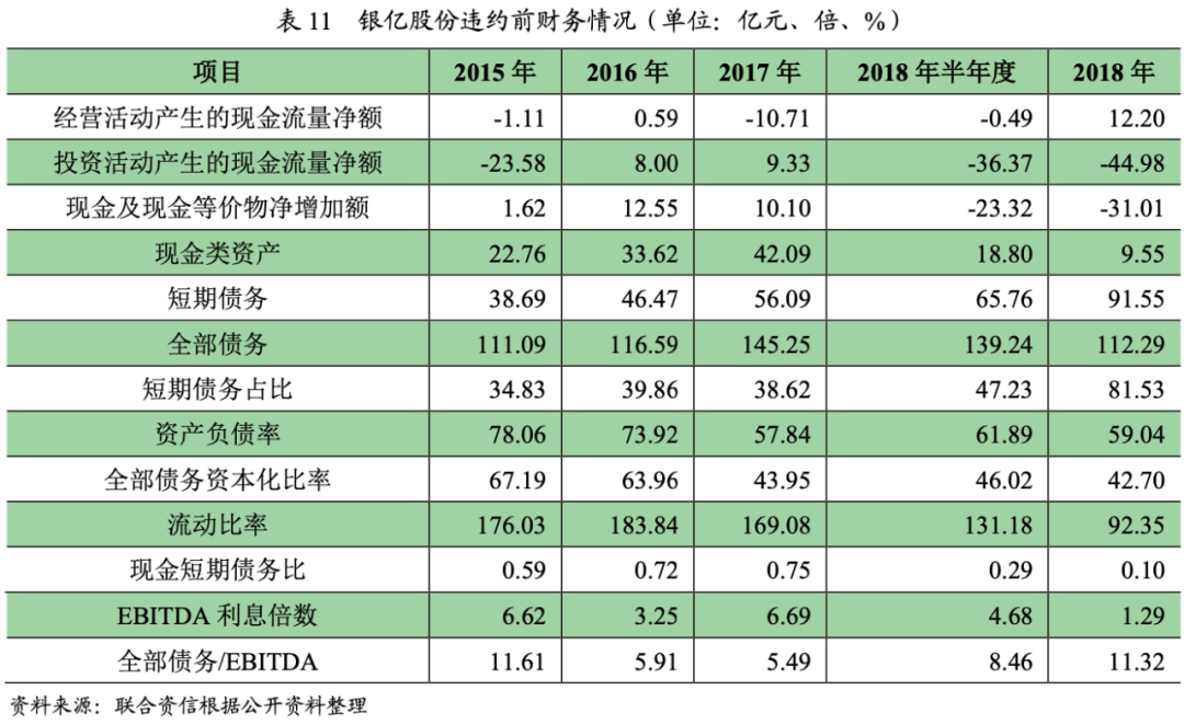2018年12月,因銀億股份股票價格持續下跌,銀億集團股票質押遭強制平倉,控股股東流動性緊張致使銀億股份融資環境惡化。同時,銀億股份子公司1.80億元銀行借款到期無力償還,且銀億集團及銀億股份均未履行擔保責任。2018年12月24日,銀億股份發行的“H5銀億01”構成實質性違約。此后,銀億股份發行的“H6銀億04”“H6銀億07”和“H6銀億07”相繼違約。
