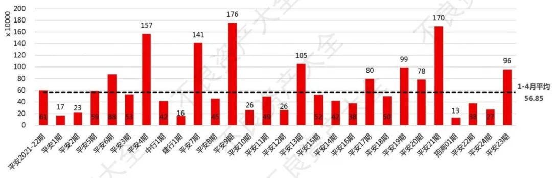 從2022年1-4月份數(shù)據(jù)不難看出,平安銀行在銀登中心成交個貸不良資產(chǎn)本金余額共計約23.40億元,本息余額總計約79.72億元,分別占1-4月銀登中心成交個貸不良資產(chǎn)的99.01%和99.69%.而這個數(shù)字在去年12月還是95%左右。可見1-4月平安銀行瘋狂出貨,其他銀行基本保持靜默。