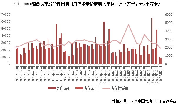 01 市場走勢供求規模雙雙環比大降 平均地價創2019年以來新低