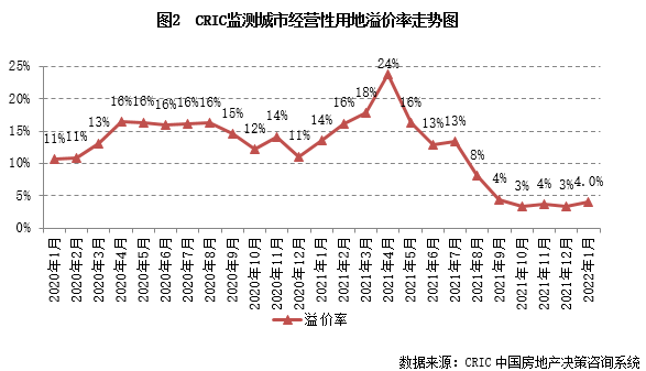02 市場熱度 寧波三輪土拍回暖拉動1月溢價率微漲 但多數城市土地市場仍舊遇冷