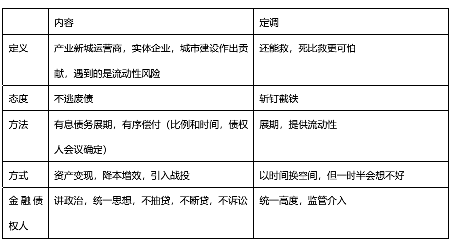 債委會(huì),本意是想提供這樣的一個(gè)臺(tái)階,在債務(wù)幻滅或行將幻滅的時(shí)候,將損失最小化,社會(huì)影響最小化,保障一定程度的秩序,堅(jiān)持按照市場(chǎng)化、法治化、公平公正、分類施策的原則進(jìn)行的一種存在。