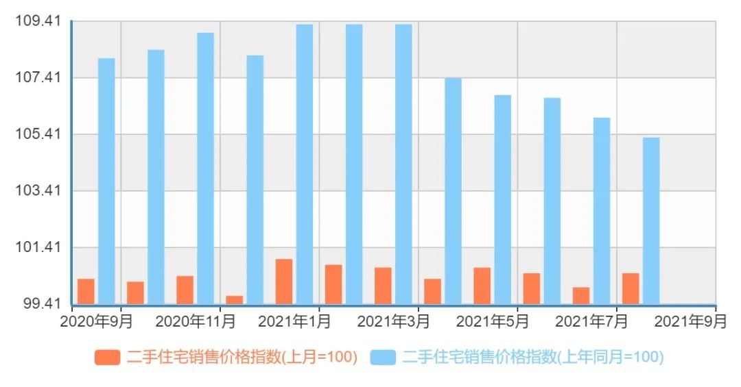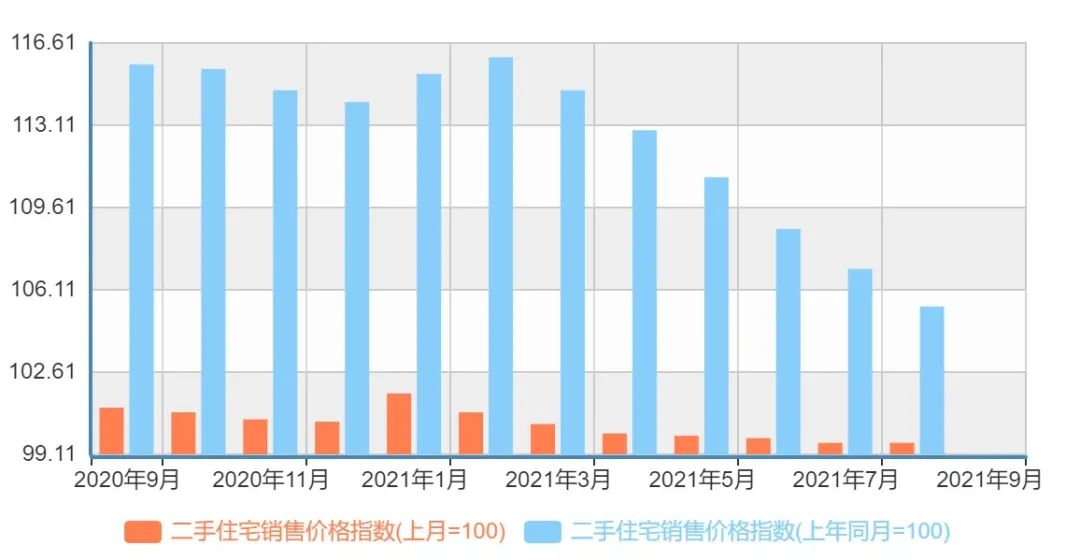 看看成都,如上圖,情況比深圳好一些。但去年相同時間段內,成都的二手房住宅銷售價格漲幅也基本在8%左右,不低了。尤其今年上半年漲幅似乎還比深圳更猛。