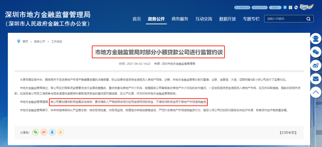 緊接著,深圳、廣州兩地監(jiān)管部門就發(fā)文,要求小貸公司自查,嚴(yán)禁信貸資金違規(guī)流入樓市,一旦發(fā)現(xiàn)及時采取相關(guān)措施,收回貸款。