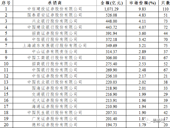 2020年1-7月民企信用債承銷前20名情況表