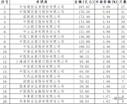 (二)承銷商中銀行穩(wěn)、券商活躍