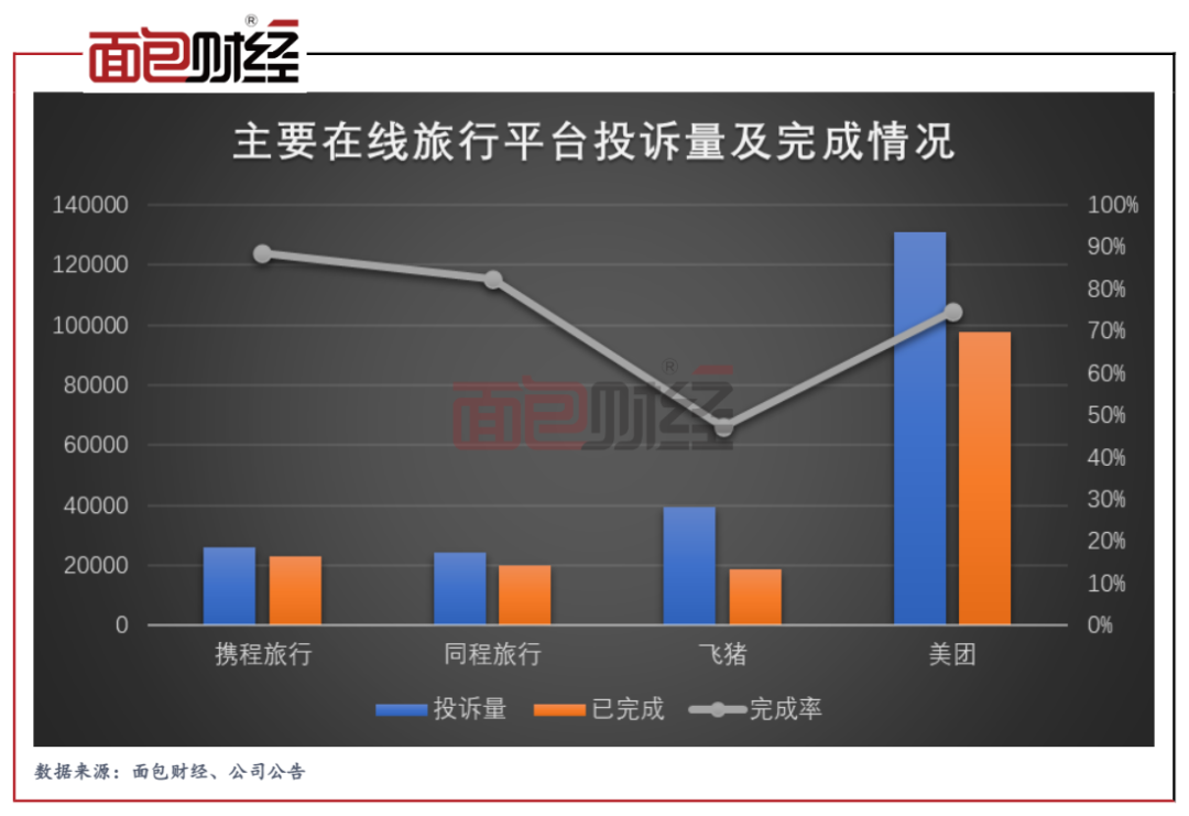 服務方面,攜程除了擁有全行業領先的呼叫中心平臺,對客戶投訴的回應效率也高于主要競爭對手。根據黑貓投訴平臺數據,截至2022年3月23日,攜程的累計投訴量在主要競爭對手中處于較低位置,而公司面對投訴的完成率排名靠前。