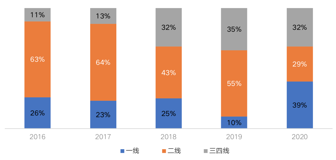 現在回頭復盤可以發現,疫情期間,許多城市轉變供地策略,優先供應條件較好的土地,以刺激企業拿地積極性,穩定整體市場。然而從成交情況來看,在土拍恢復的初期,不少企業并未意識到這波看漲行情,錯失了不少優質地塊。