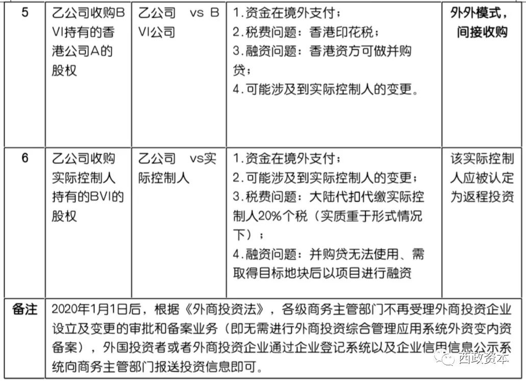 備注:以上外內模式、外外模式、內外模式、返程投資等定義系筆者出于行文方便所設,目前無官方定義,請讀者著重注意相關詞匯所表達的含義。