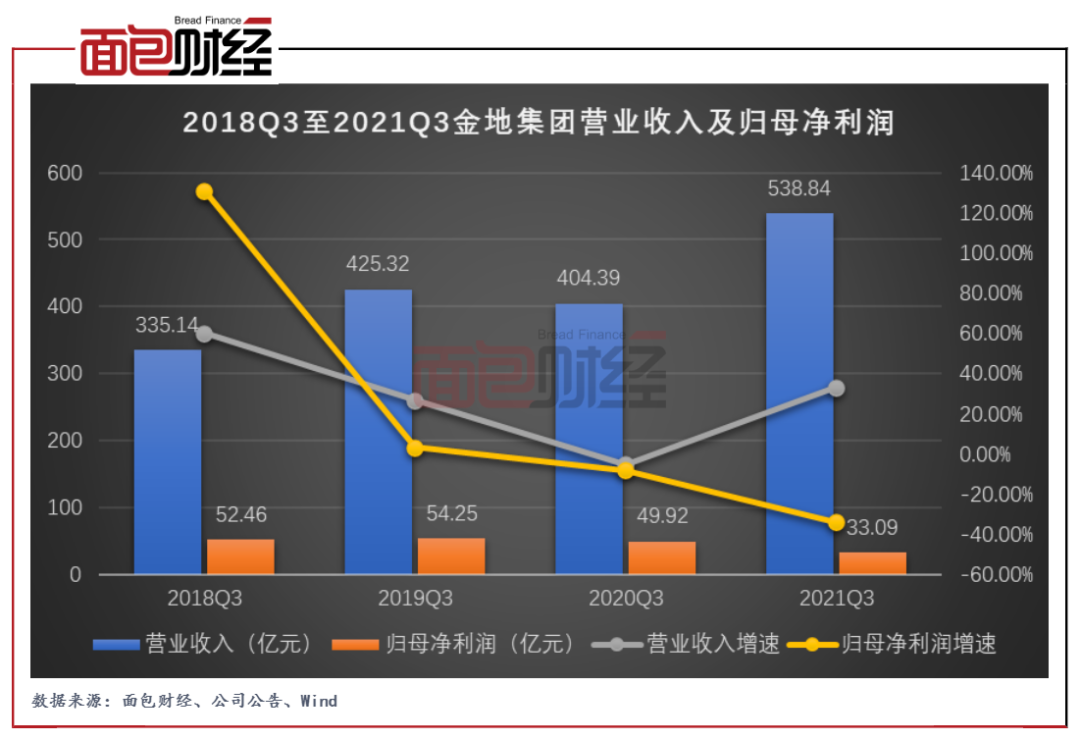 圖1:2020Q3至2021Q3金地集團業績看板