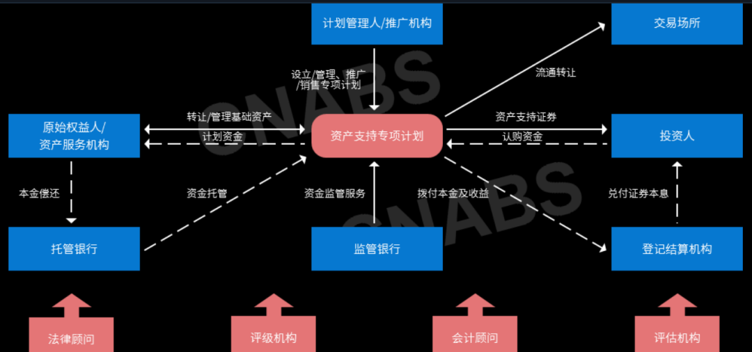 在銀行間債券市場發行資產證券化產品的為ABN(資產支持票據),在滬深證券交易所發行的資產證券化產品為ABS(資產支持專項計劃)。