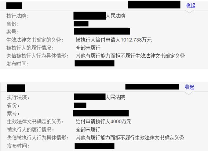 據調查,D某共涉及兩條失信人信息,全部未履行,涉及金額共計約5012.7萬