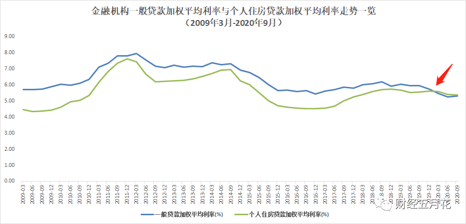 根據近期中國人民銀行發布的“2020年第三季度中國貨幣政策執行報告”(以下簡稱“報告”),9 月,一般貸款利率為 5.31%,比上年12月下降0.43個百分點;個人住房貸款利率為5.36%,比上年12月下降0.26個百分點。