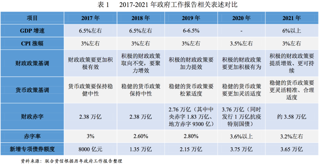 根據(jù)2021年《政府工作報(bào)告》,今年國內(nèi)生產(chǎn)總值預(yù)期增速目標(biāo)設(shè)定為6%以上,考慮到疫情得到有效控制和經(jīng)濟(jì)逐步恢復(fù),赤字率擬按3.2%左右安排,不再發(fā)行抗疫特別國債,擬安排地方政府專項(xiàng)債券3.65萬億元,同時(shí)強(qiáng)調(diào)優(yōu)化債券資金使用,合理擴(kuò)大使用范圍。《政府工作報(bào)告》為今年政府債券的發(fā)行規(guī)模及投向定下了整體基調(diào)。全國人大財(cái)政經(jīng)濟(jì)委員會(huì)在《關(guān)于2020年中央和地方預(yù)算執(zhí)行情況與2021年中央和地方預(yù)算草案的審查結(jié)果報(bào)告》中則提出要強(qiáng)化地方政府債務(wù)管理,并首次提到要指導(dǎo)地方對(duì)可能存在風(fēng)險(xiǎn)的專項(xiàng)債項(xiàng)目進(jìn)行排查,研究制定處置措施,積極防范風(fēng)險(xiǎn)。結(jié)合近期的相關(guān)文件,我們對(duì)于2021年地方政府債券市場(chǎng)可能的變化趨勢(shì)進(jìn)行了總結(jié)。
