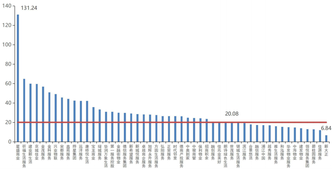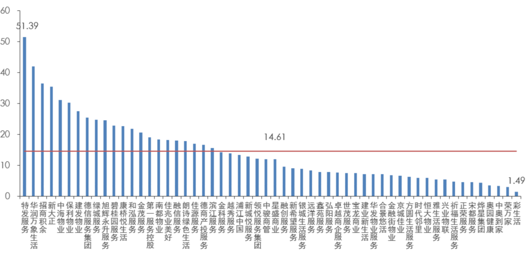 特發(fā)服務、華潤萬象生活和招商積余三家市盈率最高,分別為51.39倍、41.92倍和36.49倍。特發(fā)服務與華潤萬象生活市盈率也是少有的超過40倍的上市物企。