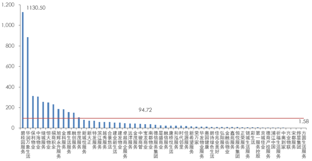其次是華潤萬象生活,截止2022年3月31日數(shù)據(jù),市值為884.47億港元,同樣顯著領先于其他上市物企。