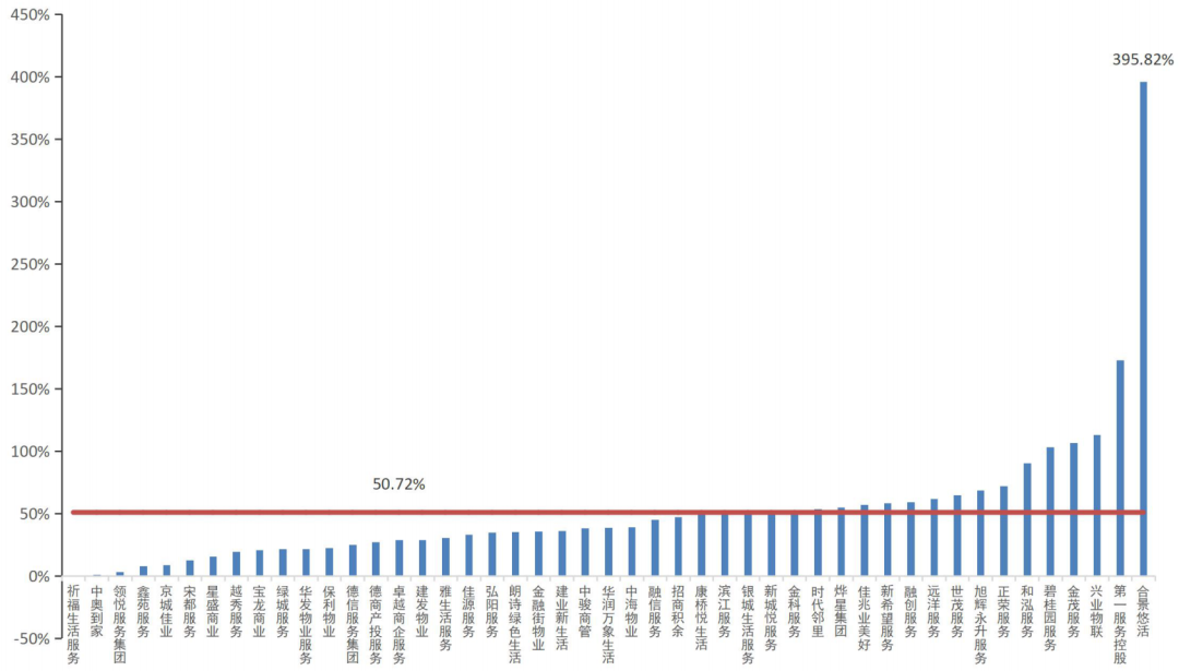 2021年上市物企在管面積增速