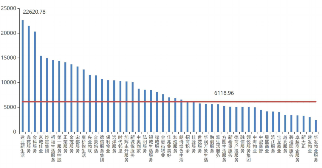 近年來上市物企運營效率也在不斷地提升,目前人均管理面積大于2萬平方米的有3家。其中,建業(yè)新生活人均管理面積最大,達22620.78平方米/人。