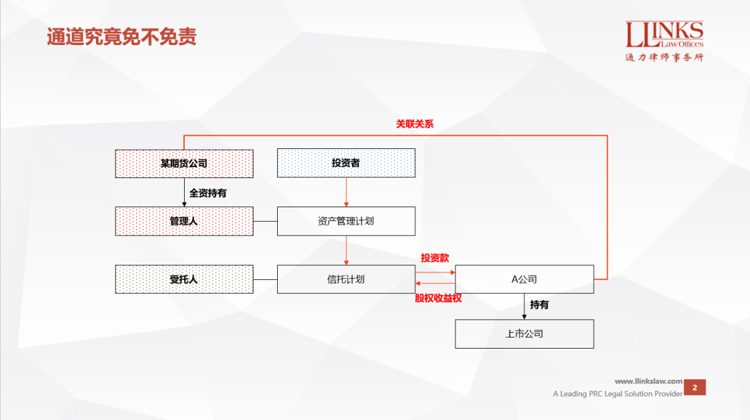 所以, 對于可能引發風險的存量通道產品而言, 合同仍然是管理人的核查重點。合同是否能夠表明這是通道產品, 合同履行是否存在違約行為, 即便想要去通道化, 想要進行主動管理, 仍然需要關注與原先合同約定是否相符。