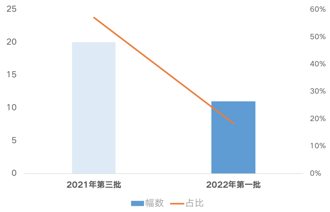 圖:杭州22年首次集中土拍出讓地塊中心城區地塊占比與21年第三批對比(按幅數)