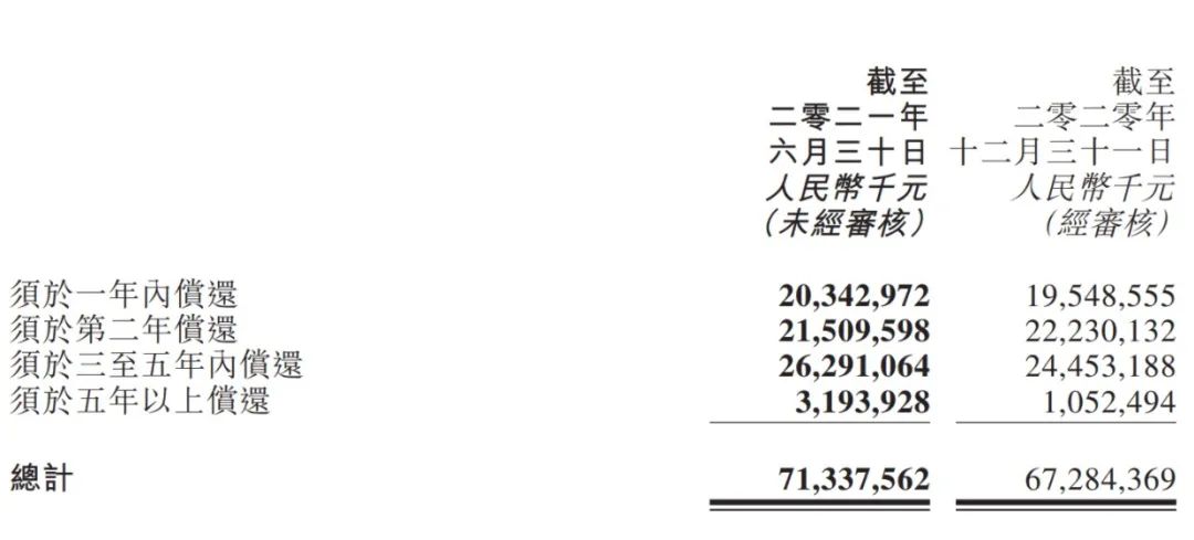 以2021年6月末為參照,正榮地產需一年內償還的債務為203.43億元,比2020年末的195.49增加了不到10個億。