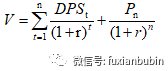 公式中,V為股權(quán)價值,DPSt為第t期的現(xiàn)金紅利,r為股權(quán)要求收益率,n為詳細預(yù)測期數(shù),Pn為持有期末買出股權(quán)的預(yù)期價格。