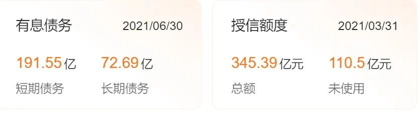 企業(yè)預(yù)警通顯示,截至2021年6月30日,雪松實(shí)業(yè)有息債務(wù)191.55億元,長期債務(wù)72.69億元。負(fù)債總額498.80億元,資產(chǎn)總計(jì)911.86億元,杠桿地產(chǎn)計(jì)算了下,資產(chǎn)負(fù)債率大概是54.7%。
