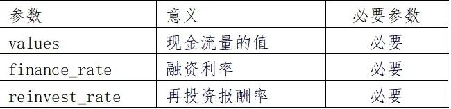 MIRR使用的方式是將期間所有的現金流入,全部以『再投資利率』計算終值FV。期間所有的現金流出,全部以『融資利率』計算現值PV。那么MIRR的公式:=(FV/PV)1/n - 1