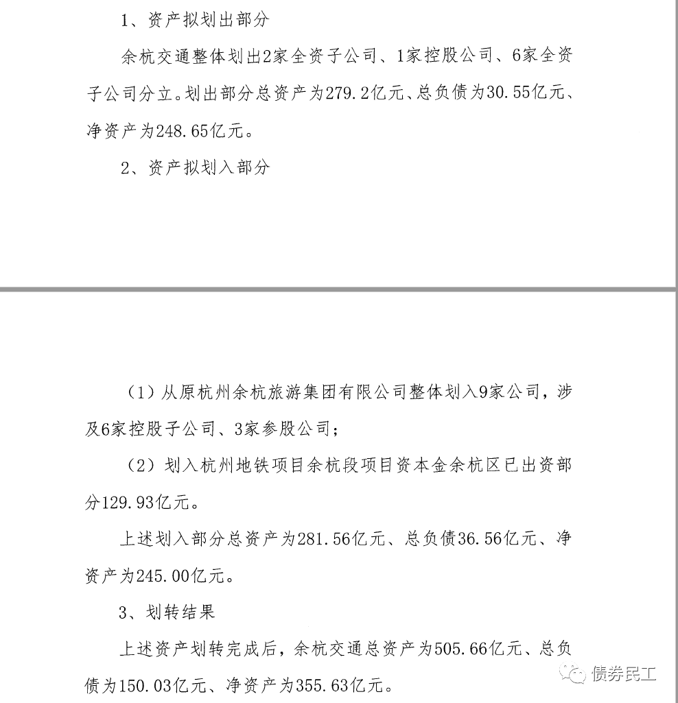2021年11月4日,杭州余杭交通集團有限公司(以下簡稱“余杭交通”)公告公司進行重大資產重組的進展,將部分資產劃出公司,部分資產劃入公司,實現了重大資產重組。