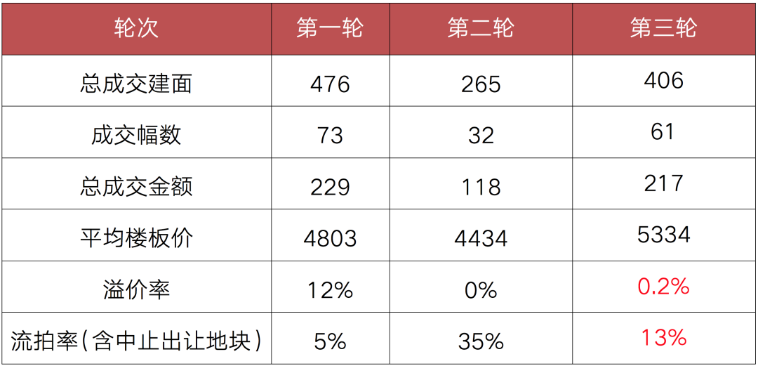 表:濟(jì)南三輪土拍熱度對比(萬平方米、億元、元/平方米)