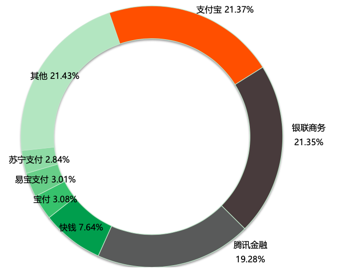 圖 1:我國第三方互聯網支付行業的市場份額占比