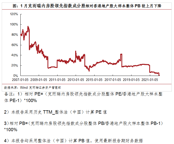 1月克而瑞領先股指上升6.9%,估值維持低位,成分股表現較好。