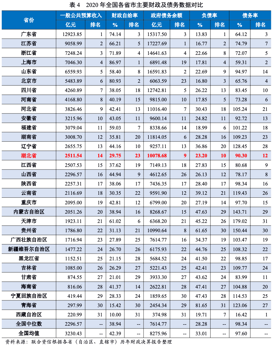 2018-2020年,湖北省政府債務余額規模持續增長。截至2020年末,湖北省政府債務余額居全國第9位。2018-2020年,湖北省負債率和債務率均持續上升。2020年,湖北省負債率在全國各省(自治區、直轄市)中排名第10位,債務率在全國各省(自治區、直轄市)中排名第12位,湖北省政府債務負擔以及償債能力均處于全國中游水平,整體債務風險較低。
