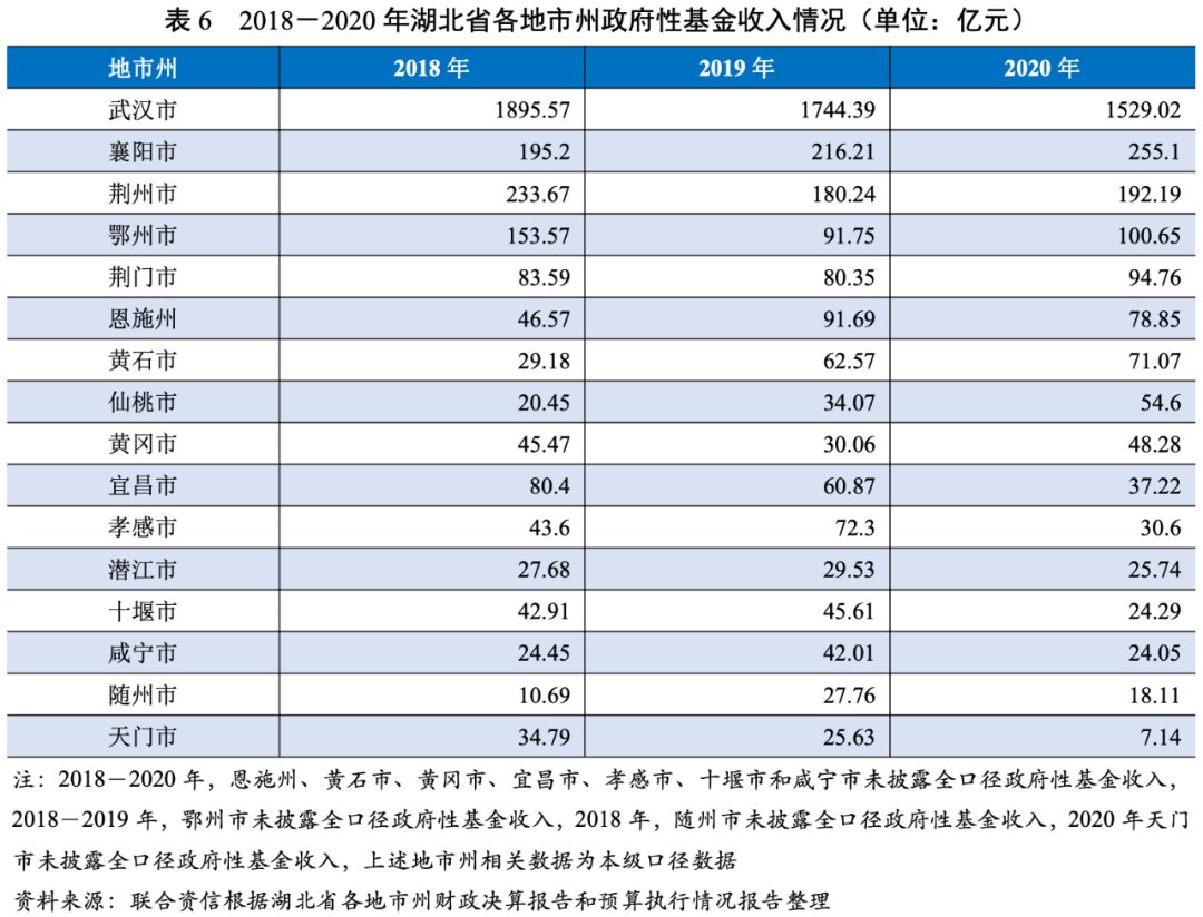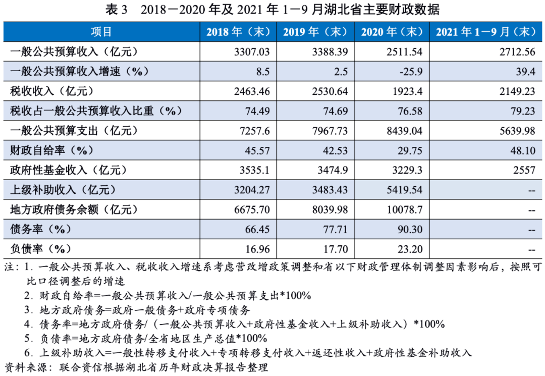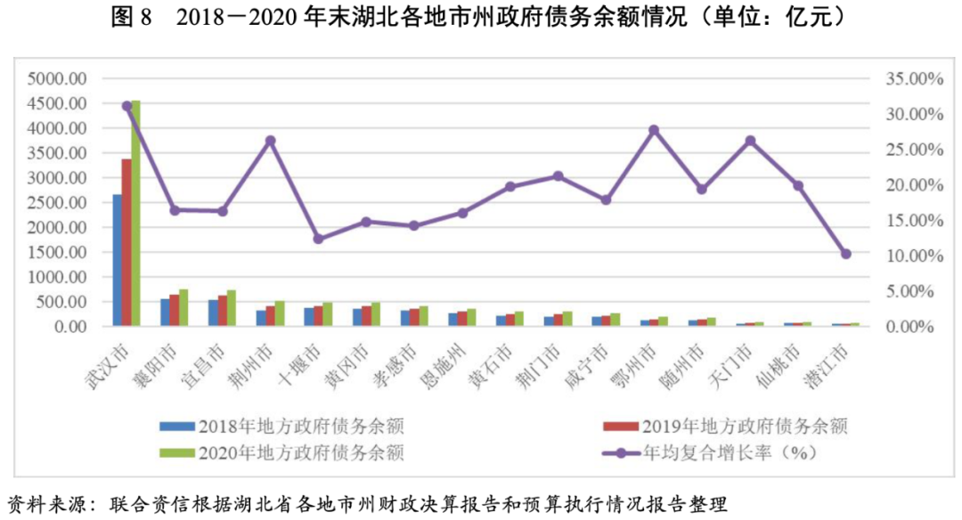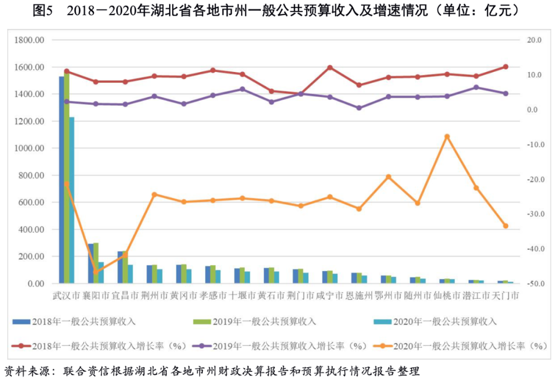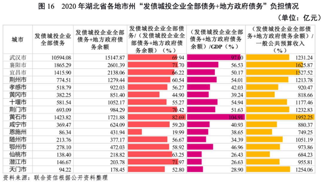 3.湖北省各地市州財政收入對發債城投企業債務的支持保障能力