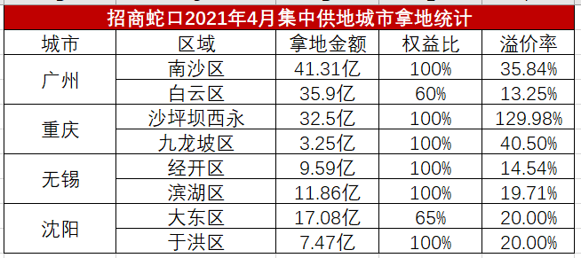 并且當(dāng)月集中供地的5個(gè)城市,除了長春,招商蛇口在其他4個(gè)城市均有斬獲: