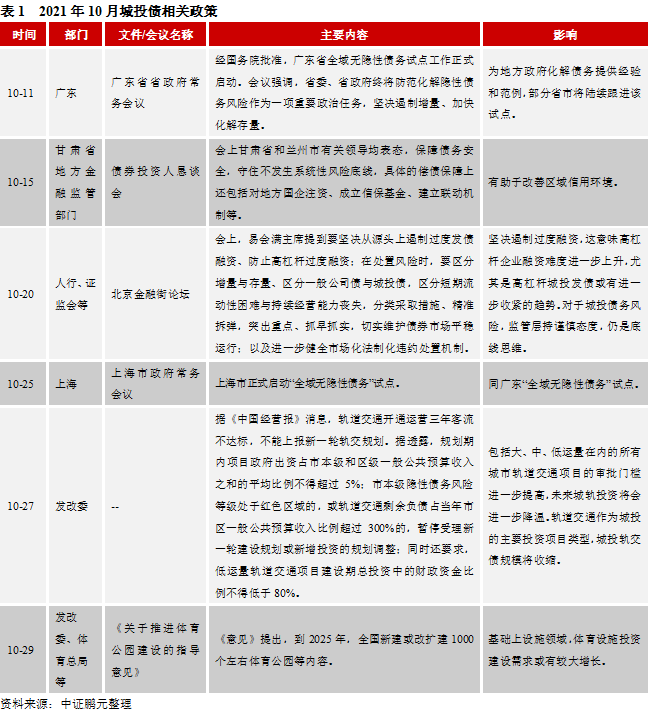 10月,廣東和上海先后啟動全域無隱性債務試點工作,試點過程中的債務化解和處置經驗將為其它地區提供解決隱性債務的經驗和范例,也是未來化解隱債的主要方式。預計未來財政較好、債務適中的地區將陸續跟進開展“全域無隱性債務”試點,并逐漸推向至全國范圍。