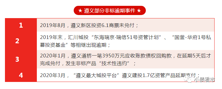 《小債看市》統計,近年來遵義共有9家發債城投平臺涉及22起非標風險事件,以下為幾例典型的“技術性違約”和非標逾期事件。