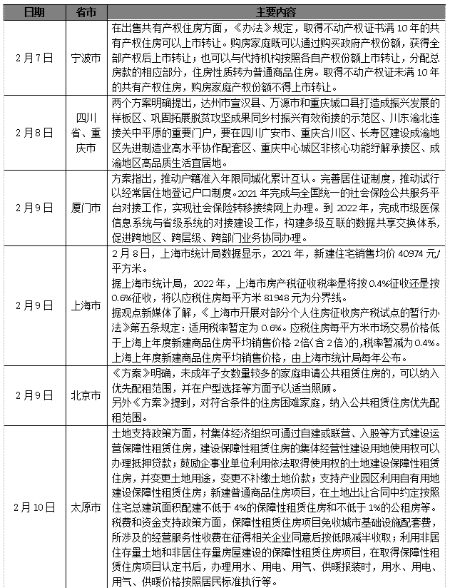中央層面,央行、銀保監會發布關于保障性租賃住房有關貸款不納入房地產貸款集中度管理的通知,根據通知,銀行業金融機構向持有保障性租賃住房項目認定書的保障性租賃住房項目發放的有關貸款不納入房地產貸款集中度管理。