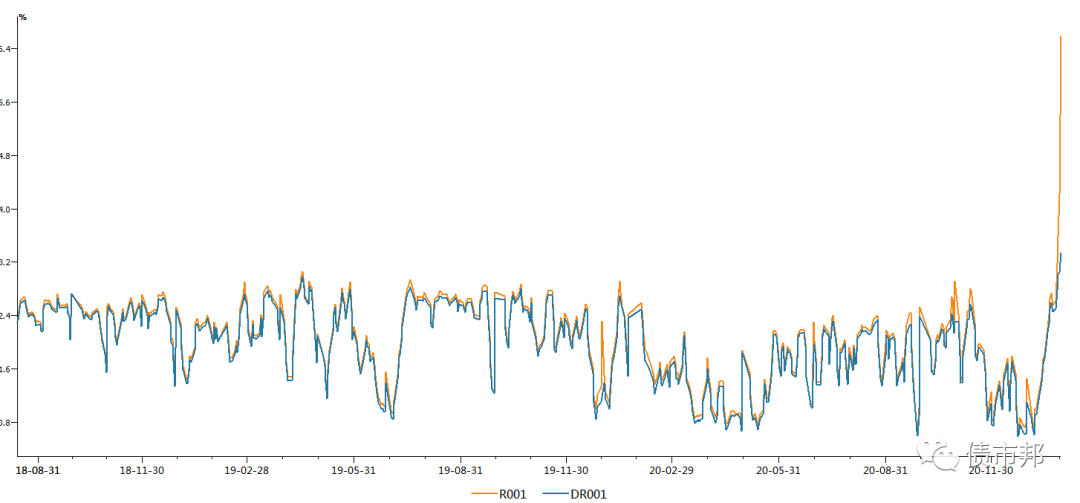 銀行間市場的質押式回購隔夜利率R001飆升到6.58%的近6年高位,DR001這個銀行機構押利率借錢的最優市場利率也達到了3.33%。考慮到R001的價格是包含了DR001的,那非銀機構押信用債借錢的平均成本很可能已經達到了接近10%的水平了。